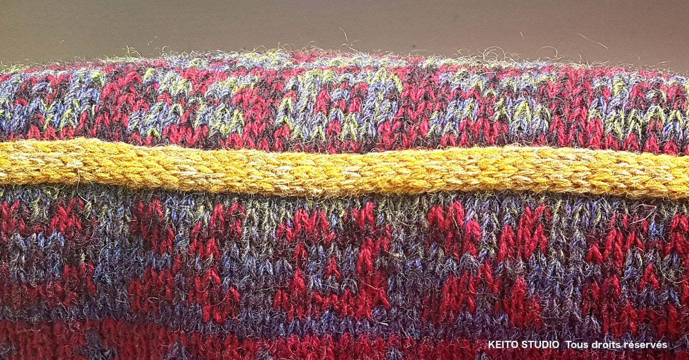 Les petits motifs sont rebordés au point de maille. Pas de couture.