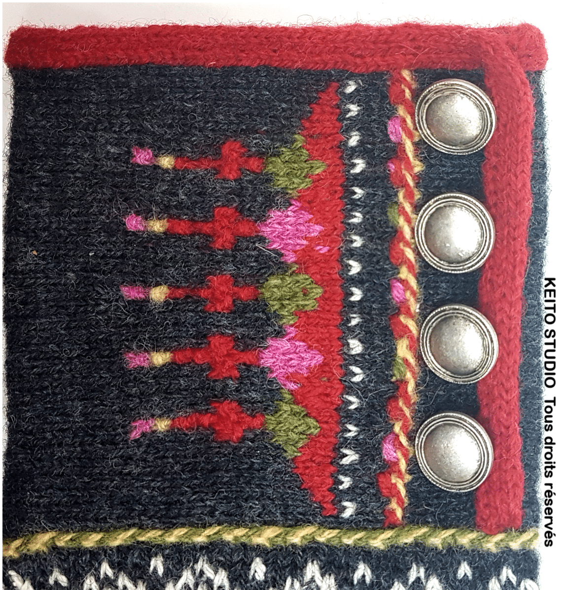Le kit mitaines Arvhild est proposé avec huit boutons en métal ou sans boutons.
