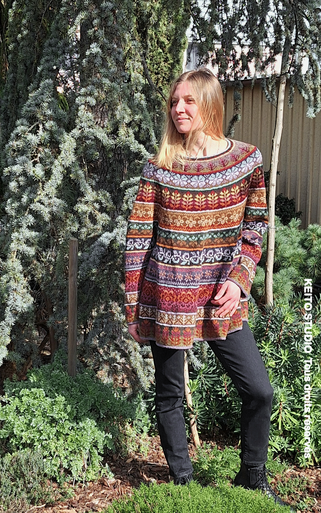 Le kit tricot du pull Kira comprend tous les fils 100 % pure laine pour tricoter la version la plus longue : 33 couleurs.